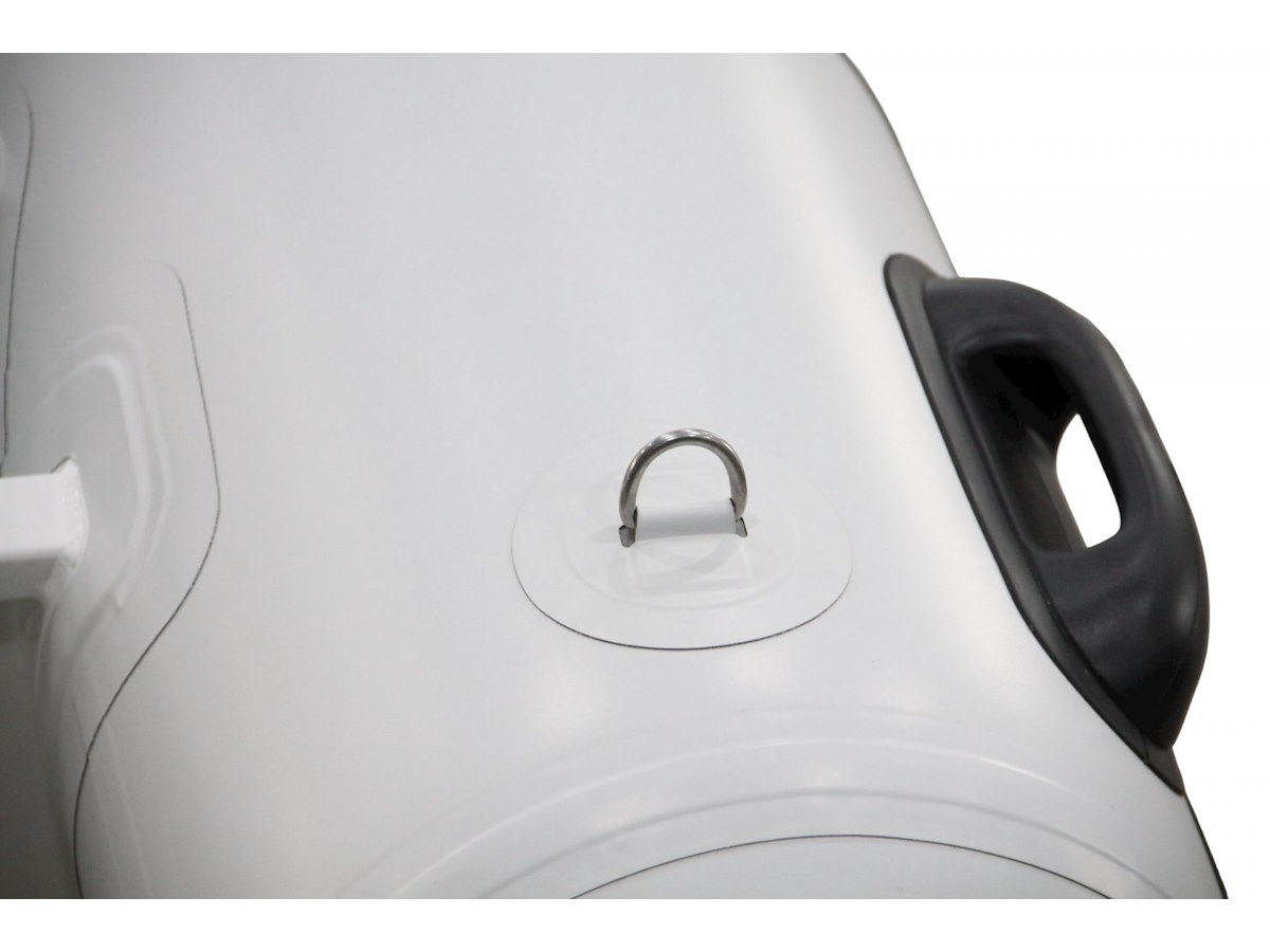Realizzato in alluminio marino riciclabile di alta qualità, il tender è verniciato di bianco tramite un processo ecologico chiamato “verniciatura a polvere” (powder coating), che garantisce una finitura liscia, durevole e una resistenza aggiuntiva alla corrosione marina.