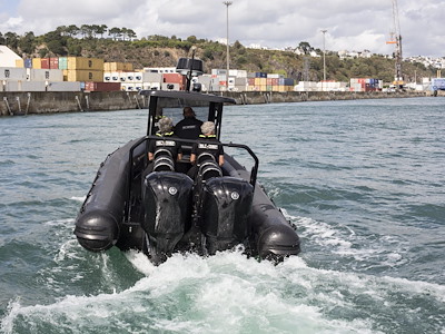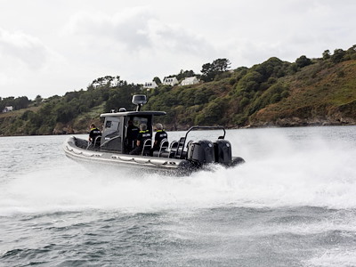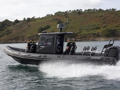 La Patrol 860, la barca più grande della gamma, è un battello pneumatico semi-rigido "su richiesta", adatto a tutti i programmi di navigazione.