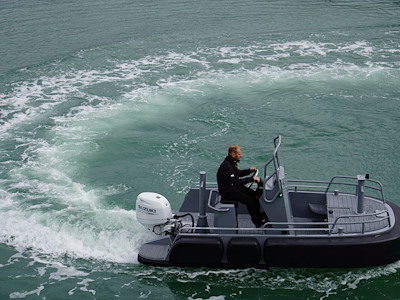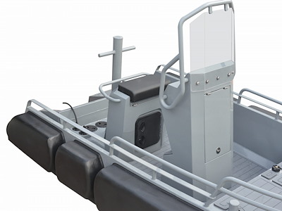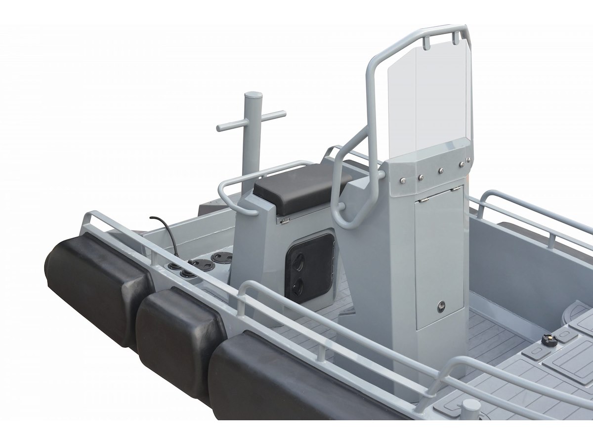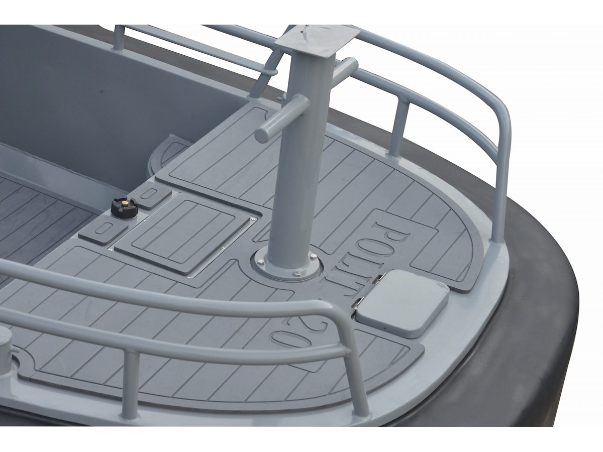 L’imbarcazione è estremamente robusta, grazie allo scafo in alluminio H5083 da 5 mm e alla struttura interna rinforzata da 3 mm di spessore. Il rinforzo in PU da 20 cm che corre lungo tutto il perimetro dello scafo garantisce massima protezione in caso di contatto, senza lasciare segni sulle imbarcazioni assistite.