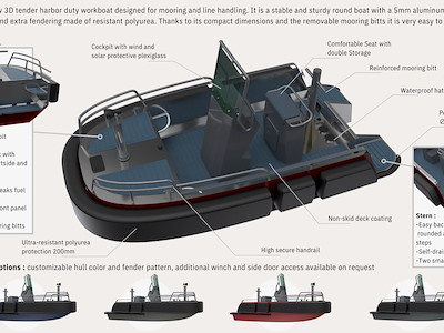La Pilot 420 è una barca da servizio portuale 3D Tender, progettata dal nostro architetto Samy Boubezari.