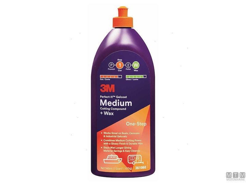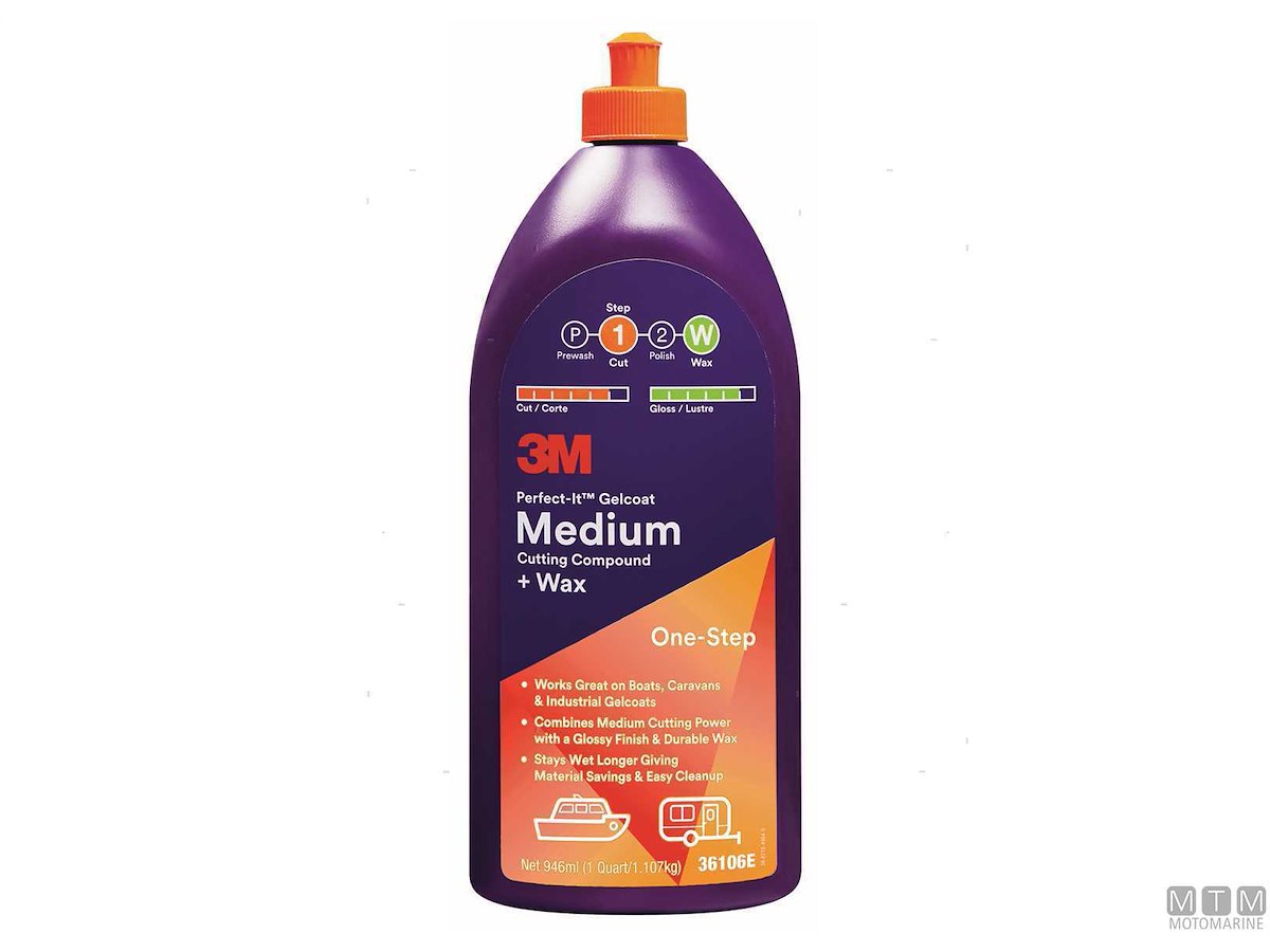 Polish e cera lucidante 3M Perfect-it Medium a basso contenuto di VOC (solventi volatili), studiato appositamente per il gelcoat e la vetroresina. Ideale per superfici con media ossidazione e dove serve un prodotto unico senza passaggi successivi.