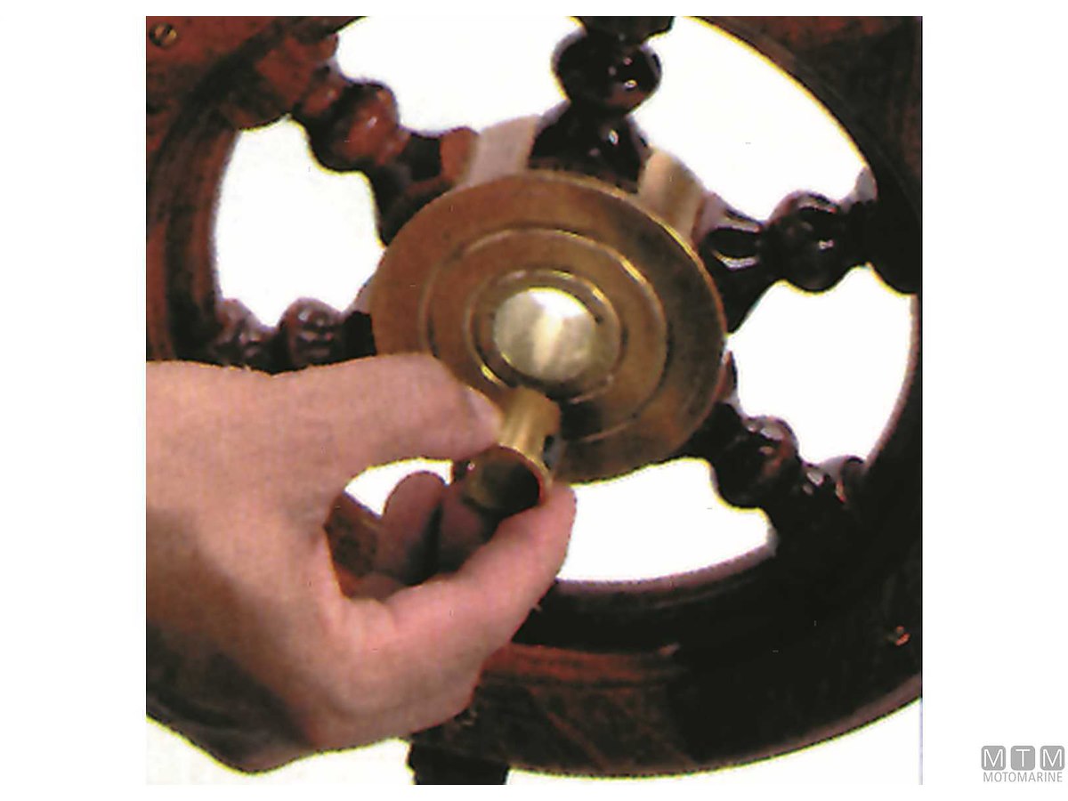 Coprimozzo e boccola di riduzione in Ottone Lucido per ruote timone. La boccola riduce da 25 a 19 mm (da 1" a 3/4").
