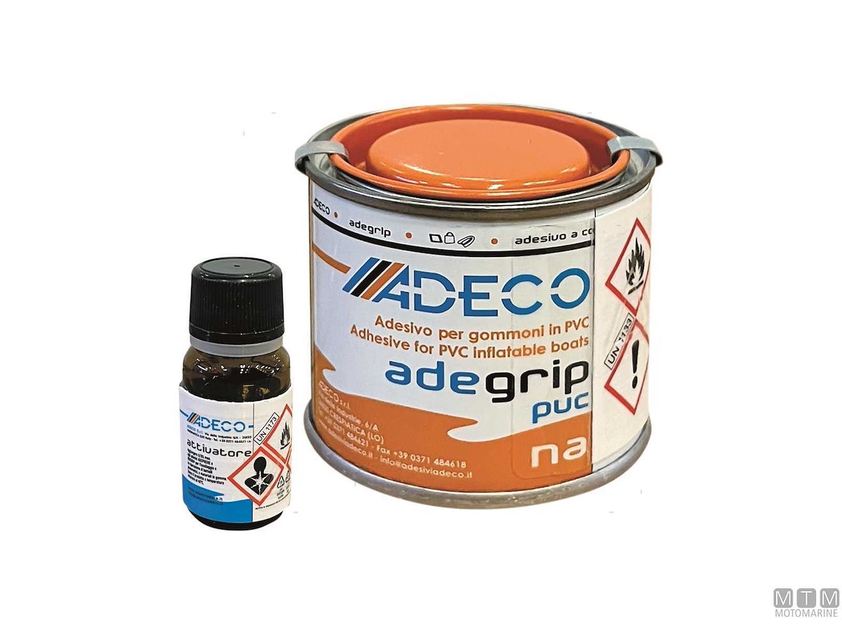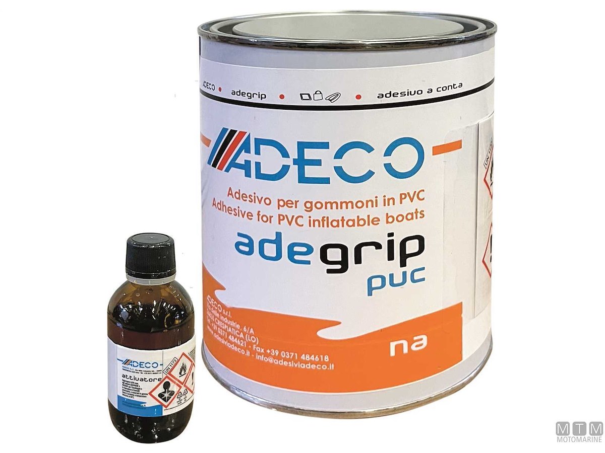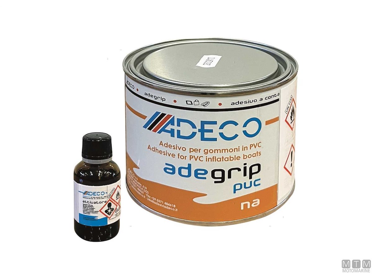 Adesivo poliuretanico bicomponente a contatto specifico per l'incollaggio di tessuti in PVC e materiali in poliuretano. Confezione completa di attivatore.