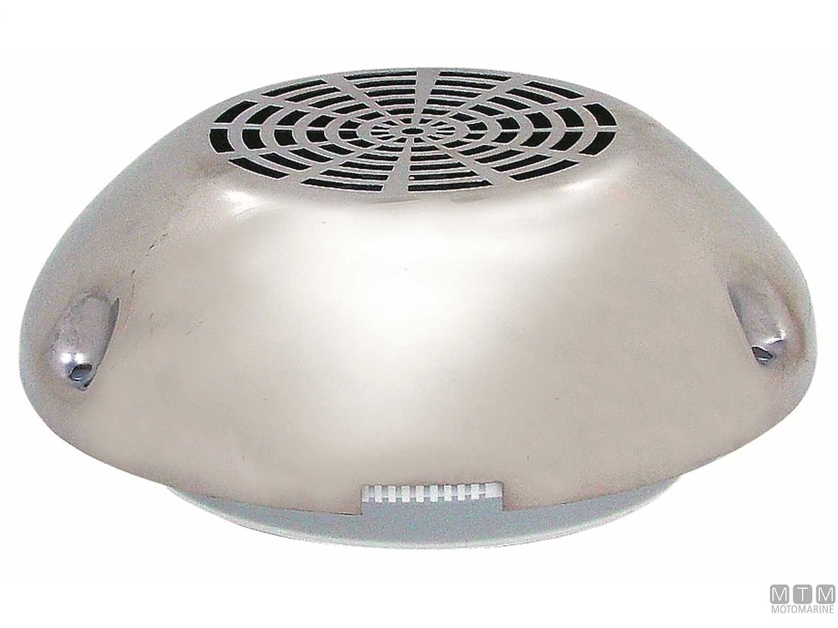 Aeratore da coperta con chiusura interna.Calotta in Acciaio Inox e base in materiale Plastico. Cod.: 1703019 Base ø mm: 200 Collo ø mm: 95 H mm: 57