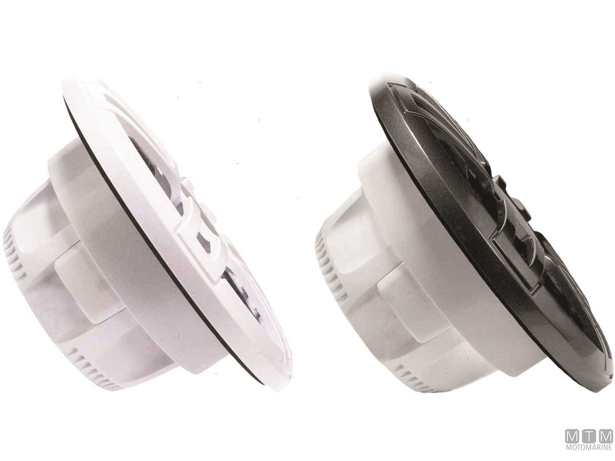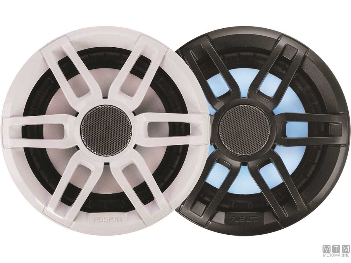 Coppia di altoparlanti marini Fusion XS a due vie impermeabili IP65. Tecnologia a cono curvato con tweeter Aluminum Dome. Forniti con griglia bianca e grigia. Dotati di luce LED RGB che può essere controllata dal telecomando opzionale.