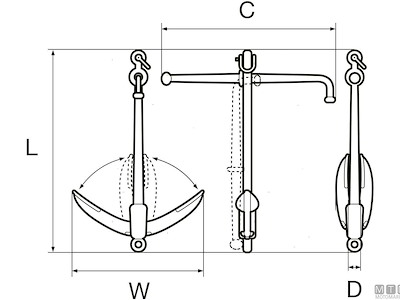 Ancora tradizionale Ammiragliato in Acciaio Zincato con marre pieghevoli.