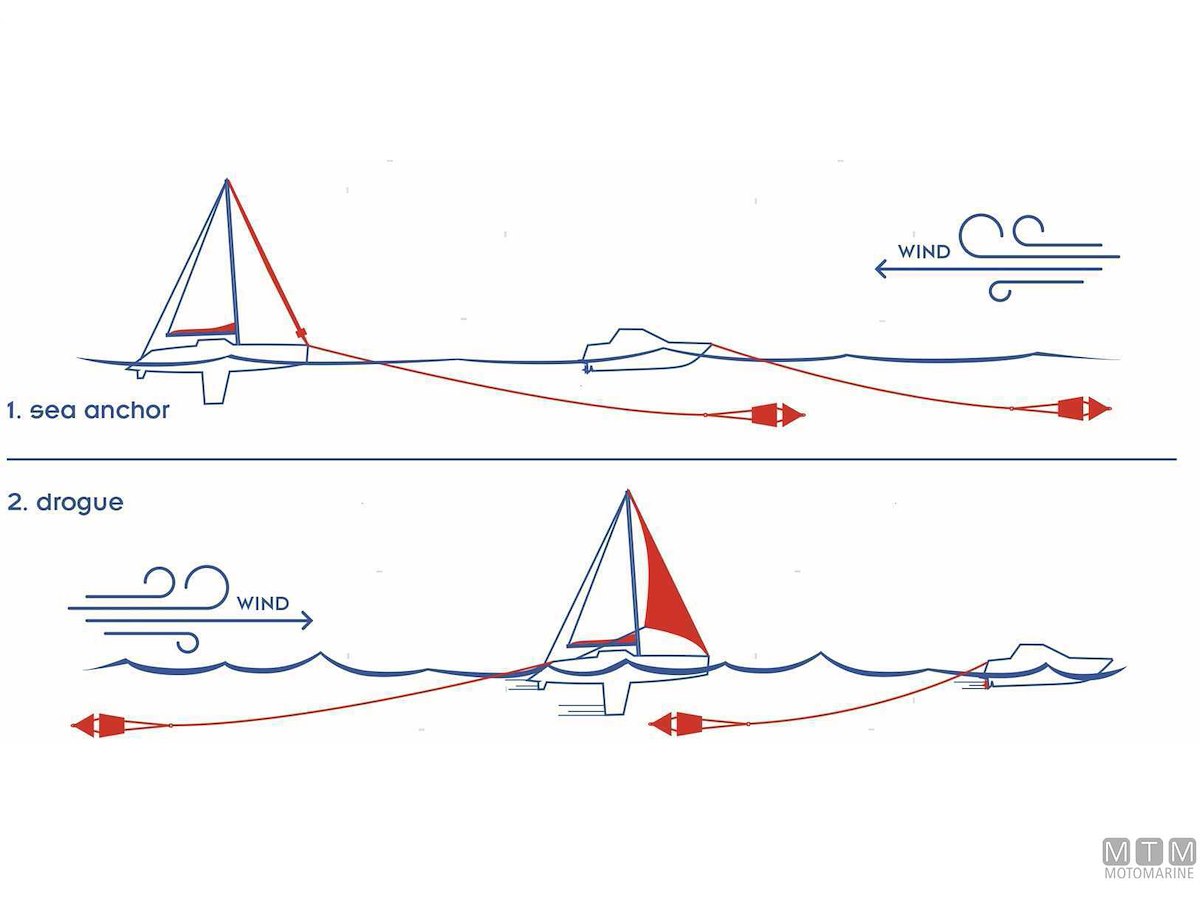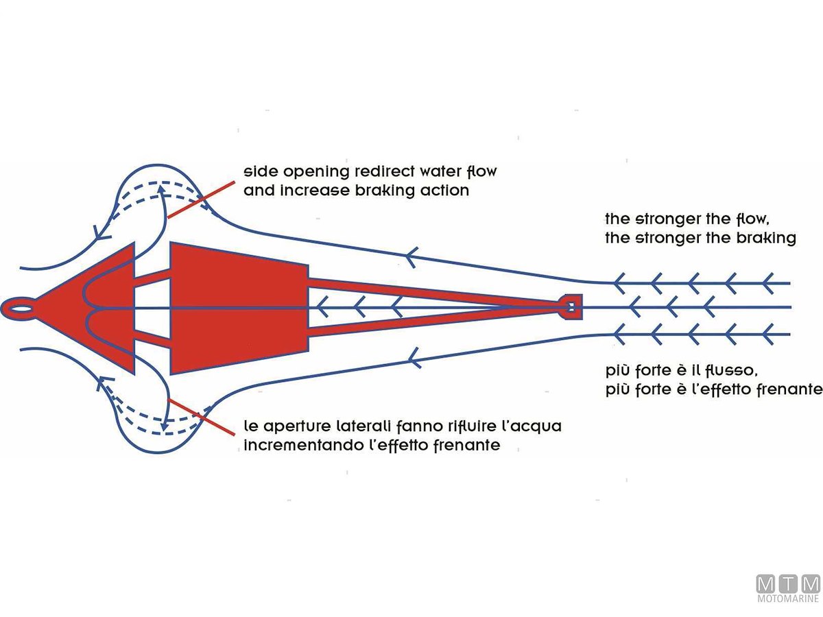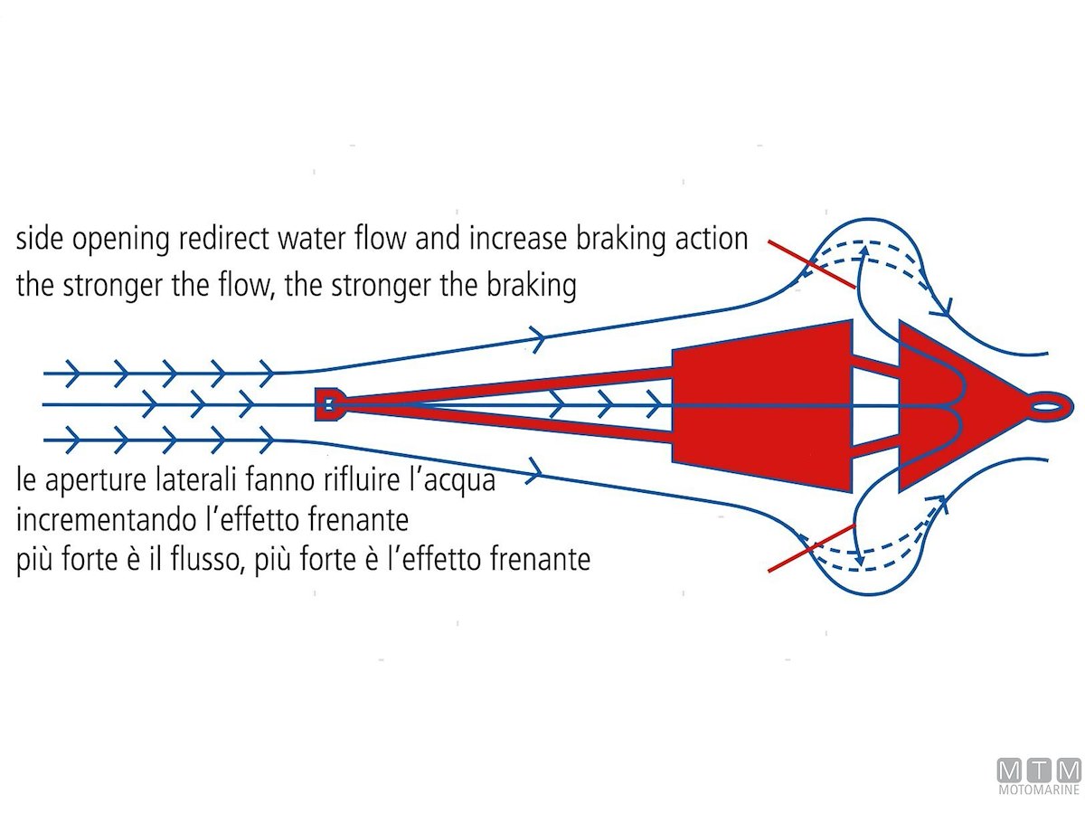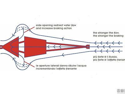 Ancore galleggianti con il 50% in più di effetto frenante rispetto alle ancore tradizionali grazie alla doppia camera con aperture laterali. Costruzione robusta in tessuto nylon Oxford Rip-Stop con rinforzi e bandelle in nastro di nylon, componenti in acciaio inox.Sono usate come ancora galleggiante per evitare lo scarroccio e tenere la prua al vento e come ancora da deriva a poppa con effetto stabilizzatore e freno. Si consiglia l'uso di una cima lunga almeno 3 volte la barca.