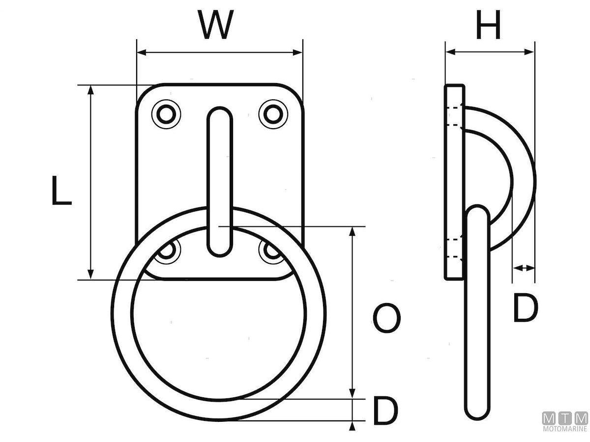 ANELLO SU PIASTRA 4 FORI D5MM ACCIAIO INOX 316