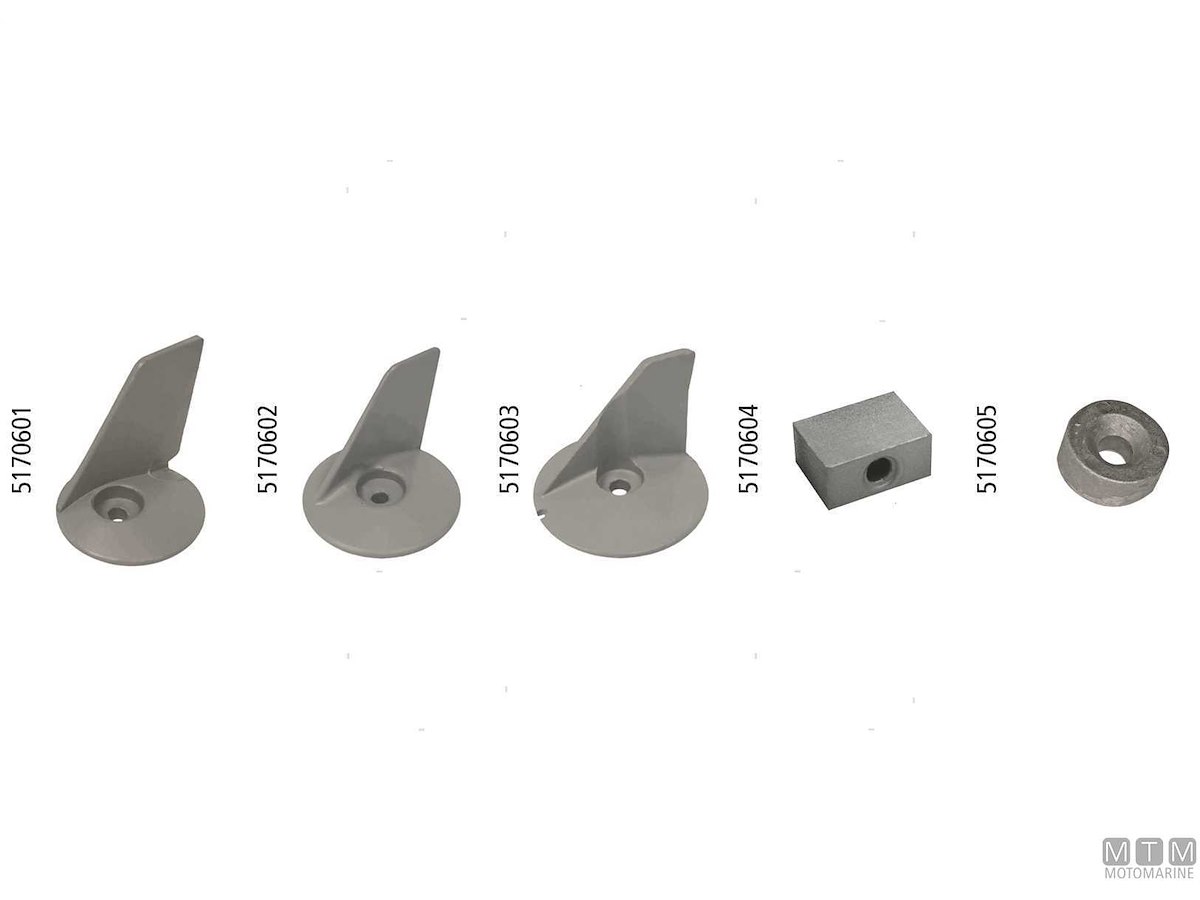 Anodi Martyr in lega di Alluminio M2 per motori fuoribordo Tohatsu: Pesano il 50% in meno rispetto ai tradizionali anodi di zinco assicurando pari protezione.