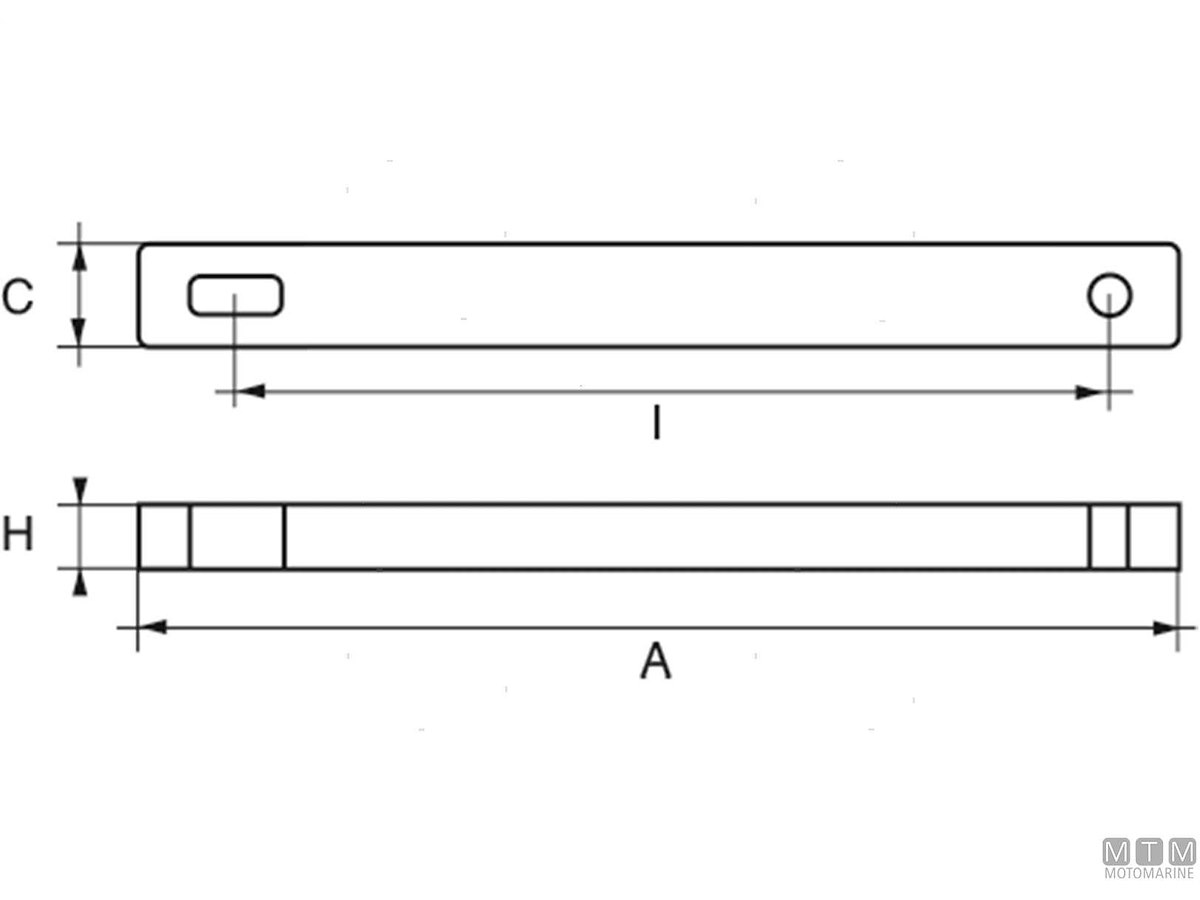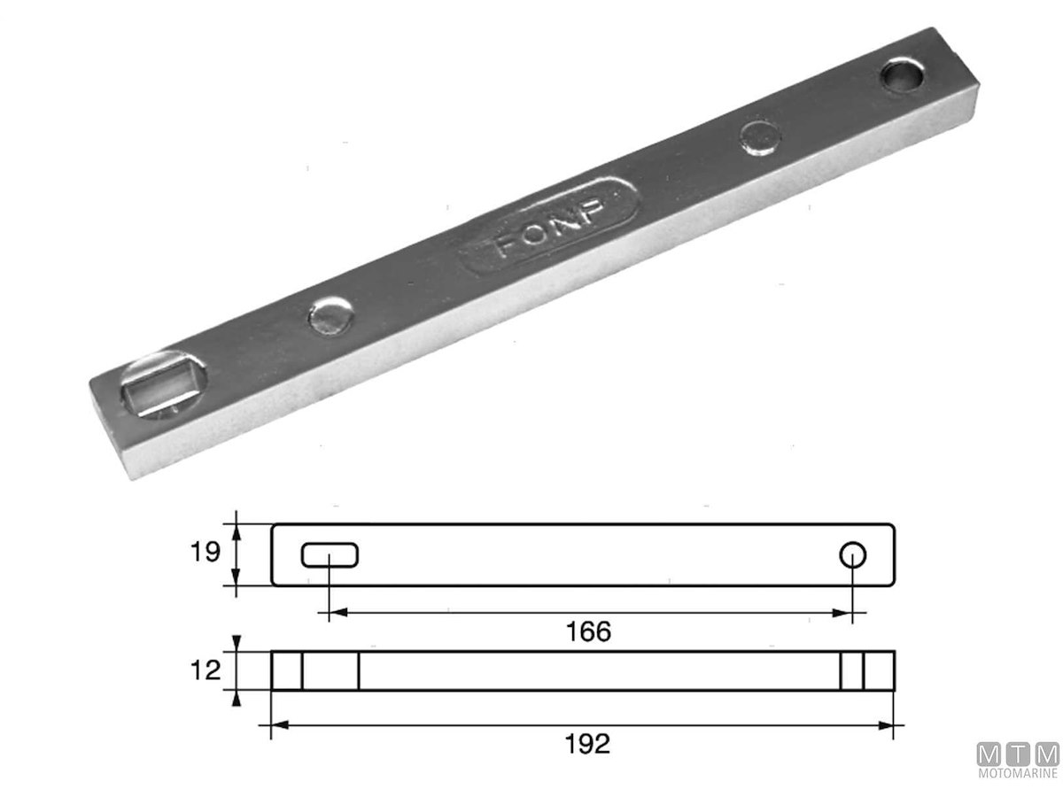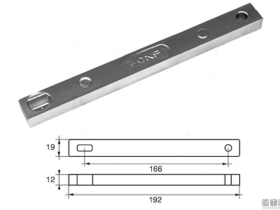 Anodo barra per motori Mercury 25-50 HP. Cod.: 5123319 Codice originale: 825271-1 Motore: 25-50 HP Materiale: Zinco A (mm): 192 C (mm): 19 I (mm): 166 H (mm): 12