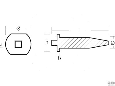 Anodo barrotto per testata motori Mercury 25-50 HP (4T). Cod.: 5128202 Codice originale: 826887M Motore: 25-50 HP (4T) Materiale: Zinco kg: 0,02 l (mm): 41 a (mm): 4 b (mm): 2 h (mm): 13 Ø (mm): 16,50 Ø1 (mm): 8