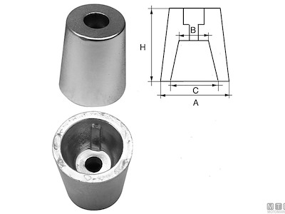 Anodo a ogiva con innesto conico per assi portaelica.