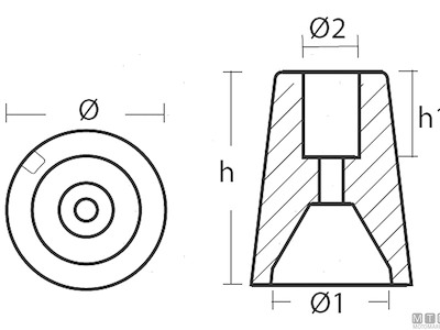 Anodo a ogiva Ferretti con innesto conico per assi portaelica.