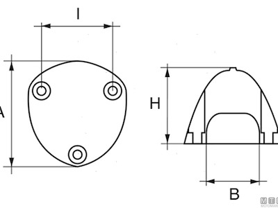 Anodo a ogiva a 3 fori per eliche Max-Prop a 3 pale.
