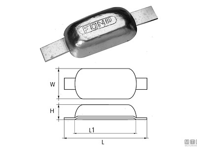 Cod.: 5111202 Materiale: Zinco kg: 2,20 L (mm): 300 L1 (mm): 200 W (mm): 70 H (mm): 25