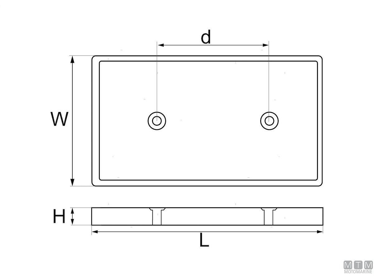 Anodo piastra per flap. Cod.: 5110106 Materiale: Zinco kg: 2,00 L (mm): 180 W (mm): 65 H (mm): 30 d (mm): 102
