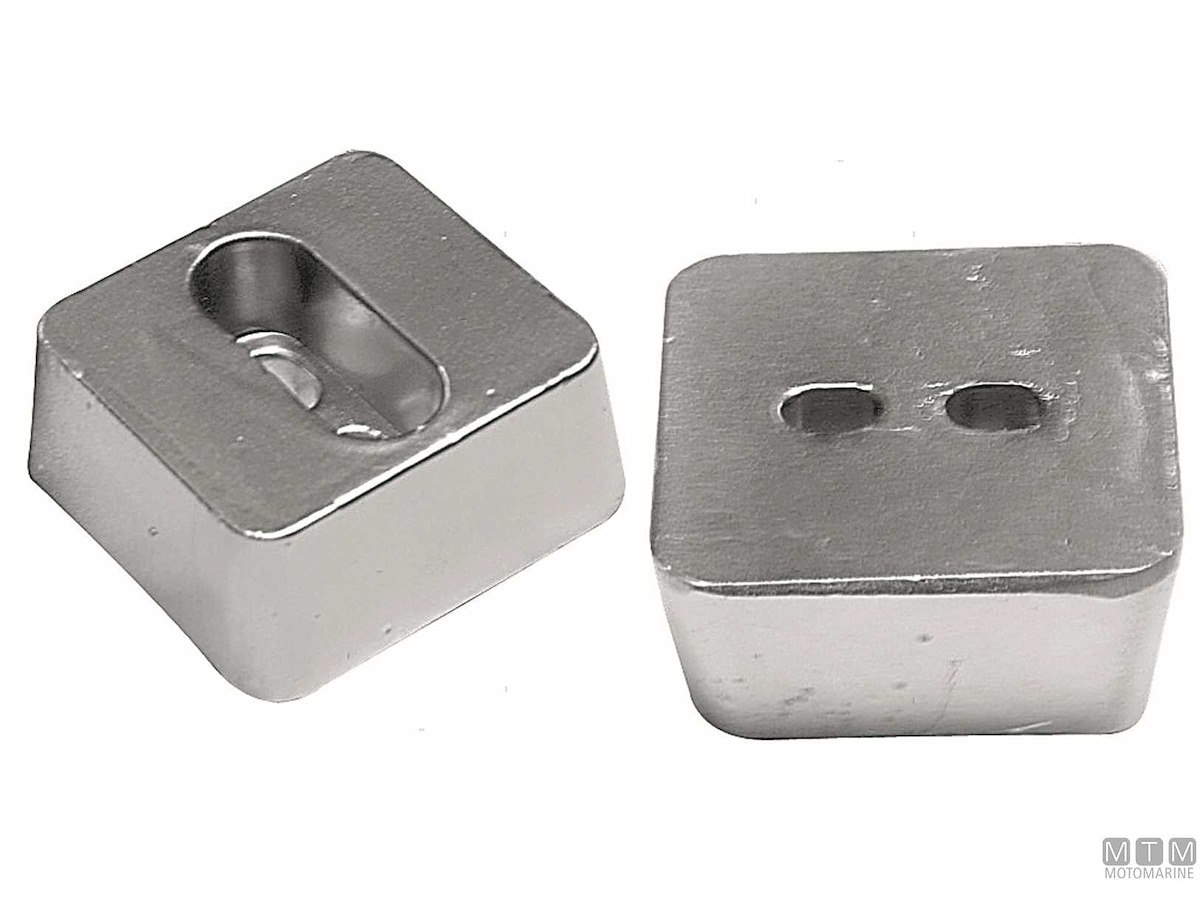 Piastra anodo per Kamewa JET FF 375S/CLASSE V2000. Cod.: 5124704 Dim mm: 58,5 x 61,5 x H25 Interasse fori mm: 18 Codice originale: 10108220
