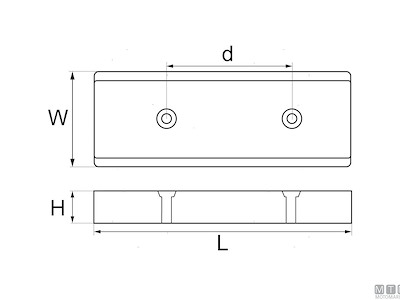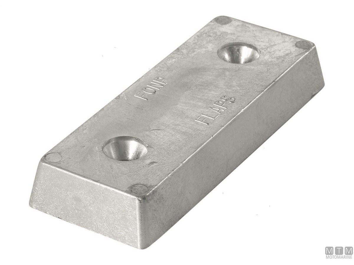 Anodo piastra per flap. Cod.: 5110407 Materiale: Zinco kg: 0,68 L (mm): 130 W (mm): 50 H (mm): 17 d (mm): 77