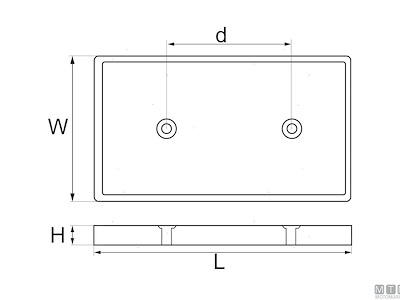 Anodo piastra per flap. Cod.: 5110106 Materiale: Zinco kg: 2,00 L (mm): 180 W (mm): 65 H (mm): 30 d (mm): 102