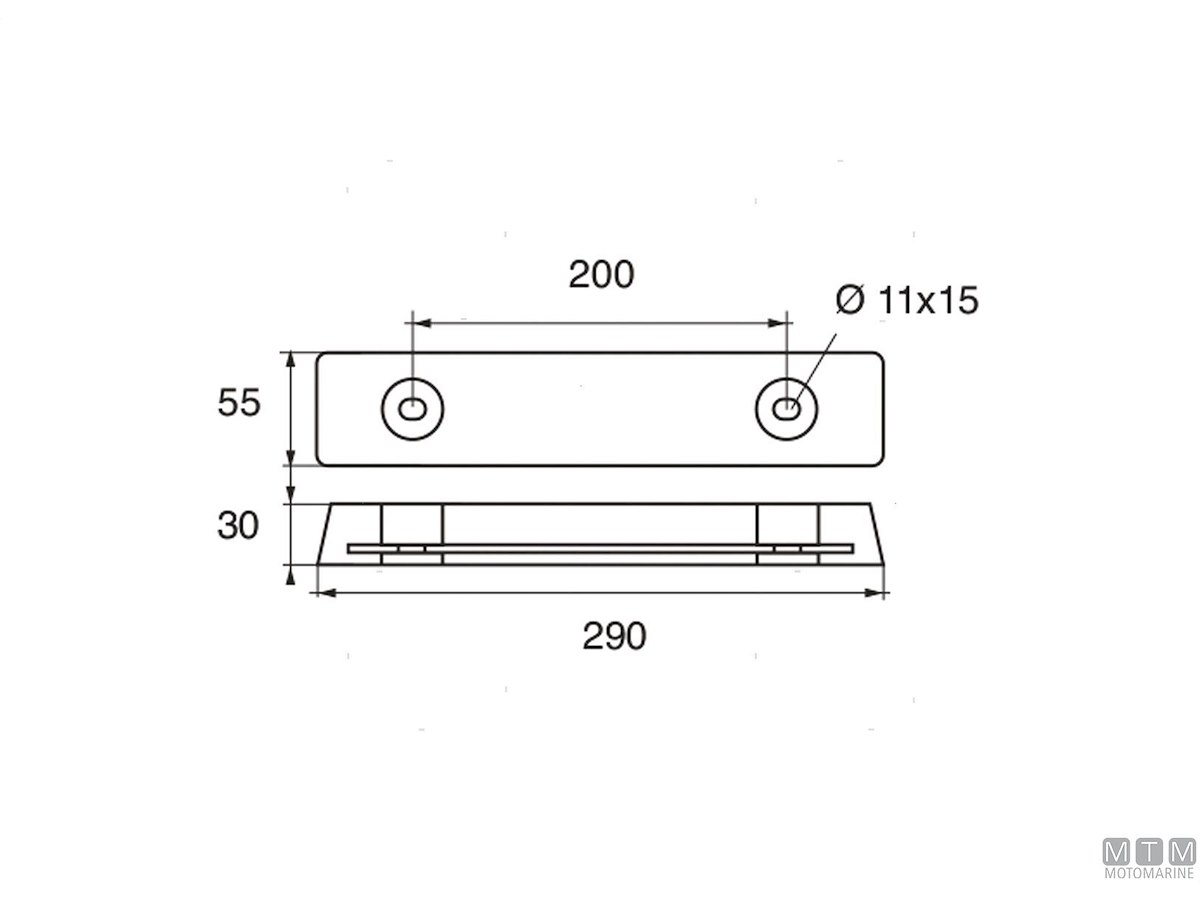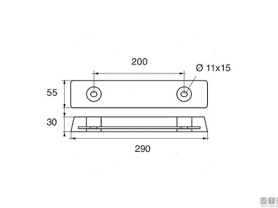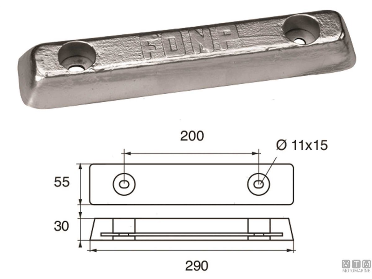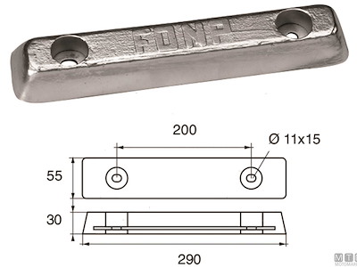 Anodo piastra per carene. Cod.: 5110109 Materiale: Zinco kg: 3,00 B (mm): 290 C (mm): 55 I (mm): 200 H (mm): 30