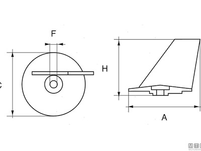 Anodo pinna per motori Mercury 6-20 HP. Cod.: 5124505 Codice originale: 853762T01 Motore: 6-20 HP Materiale: Zinco kg: 0,15 A (mm): 68 C (mm): 59 F (mm): 6,50 H (mm): 53