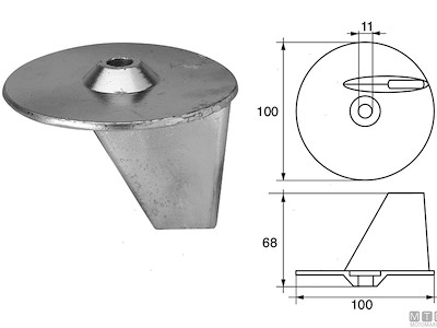 Anodo pinna per motori Suzuki DT 115-140 HP (2T). Cod.: 5124014 Codice originale: 55125-94502 Motore: DT 115-140 HP Materiale: Zinco kg: 0,33 l (mm): 59 h1 (mm): 8 Ø (mm): 98 Ø1 (mm): 11 Ø2 (mm): 21
