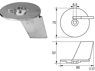 Anodo Pinna per motori Suzuki DT/DF 20-35 HP (2T/4T). Cod.: 5124025 Codice originale: 55125-96310 Motore: DT/DF 20-35 HP Materiale: Zinco kg: 0,14 l (mm): 82 h (mm): 48 h1 (mm): 4 Ø (mm): 70 Ø1 (mm): 8,5 Ø2 (mm): 17