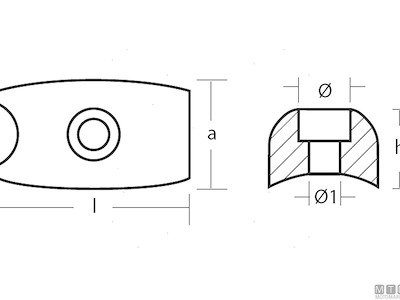 Anodo Placca per Bow Thruster Sleipner Side-Power / Volvo Penta 700. Cod.: 5120110 Codice originale: SM 71180 Bow Thruster: Sidepower - Sleipner Materiale: Zinco kg: 0,05 l (mm): 37 a (mm): 22 h (mm): 15 Ø (mm): 10 Ø1 (mm): 6,50