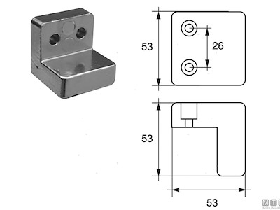 Anodo a squadra per Volvo Penta 270. Cod.: 5120127 Codice originale: 832934 Materiale: Zinco kg: 0,63 A (mm): 53 C (mm): 53 I (mm): 26 H (mm): 53