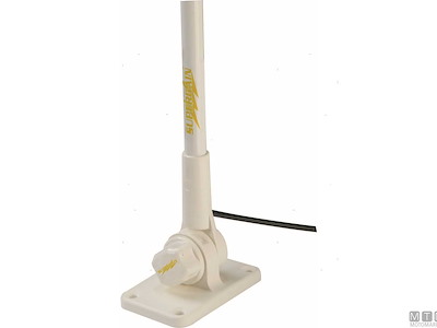 Antenna VHF Supergain Portofino in lega di Rame ricoperta di Vetroresina per barche da lavoro. 50W / 6db / 156/162 MHz / 50 Ohm. Altezza 2,30 m. Completa di cavo coassiale 6 m e base montaggio inclinabile integrata.
