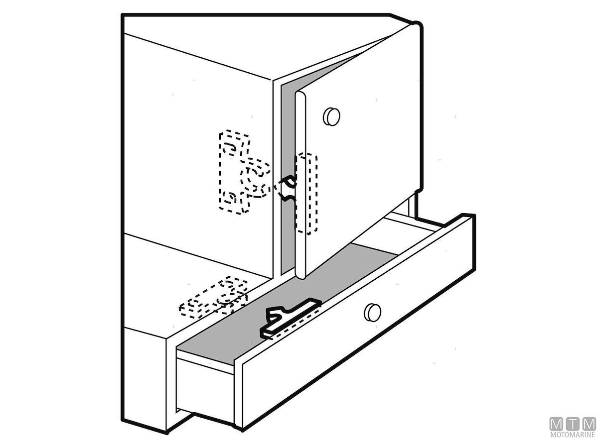 Arresto a spinta Crab in Plastica per portelli e cassetti completo di viteria. Meccanismo di incastro morbido a molla.
