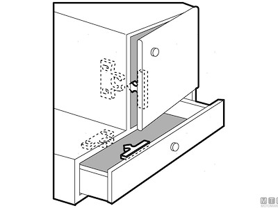 Arresto a spinta per cassetti e antine. Base e attacco in Plastica.