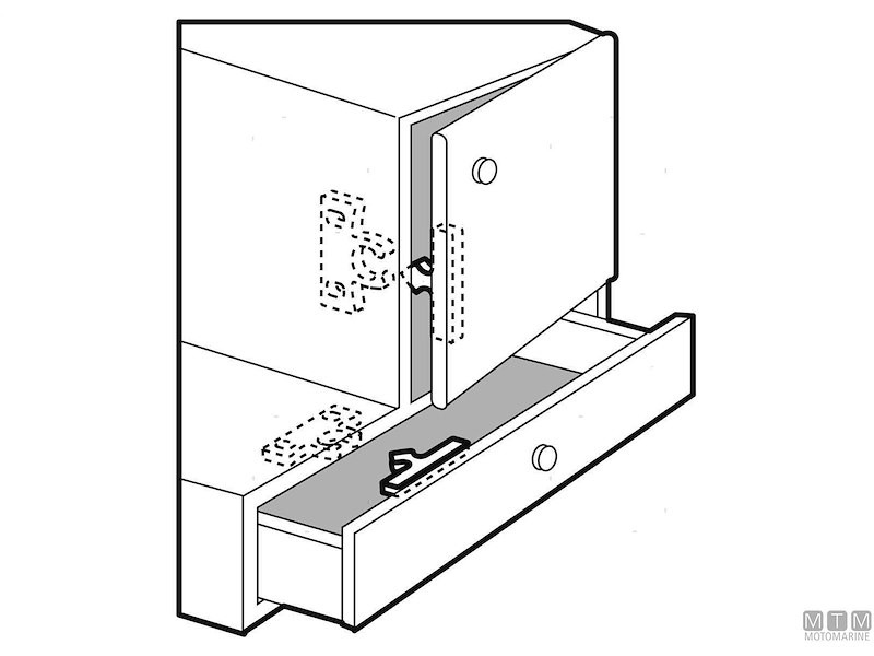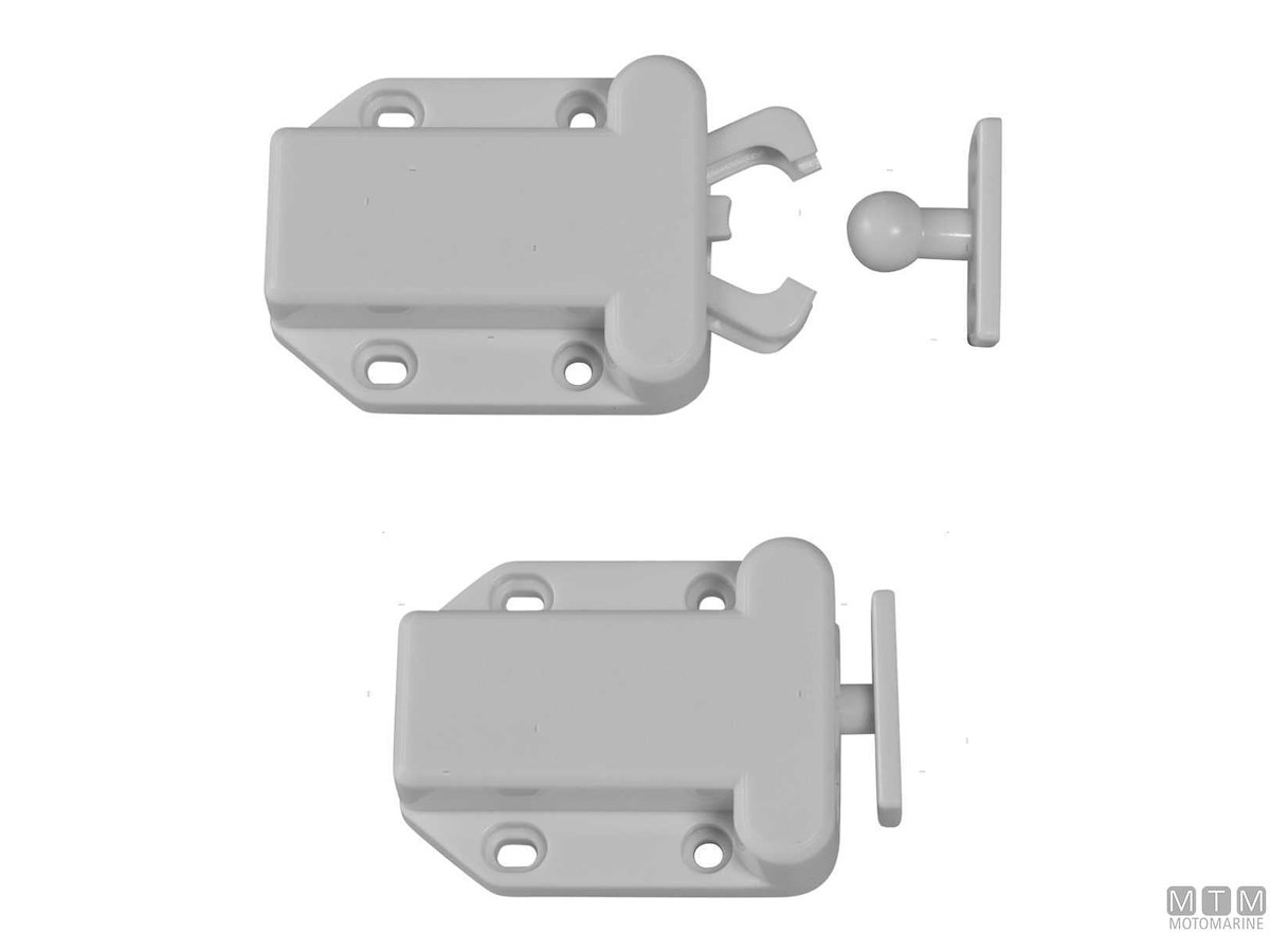 Arresto a spinta Crab in Plastica per portelli e cassetti completo di viteria. Meccanismo di incastro morbido a molla.