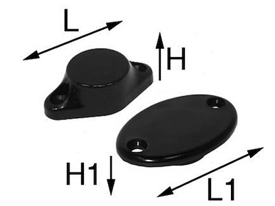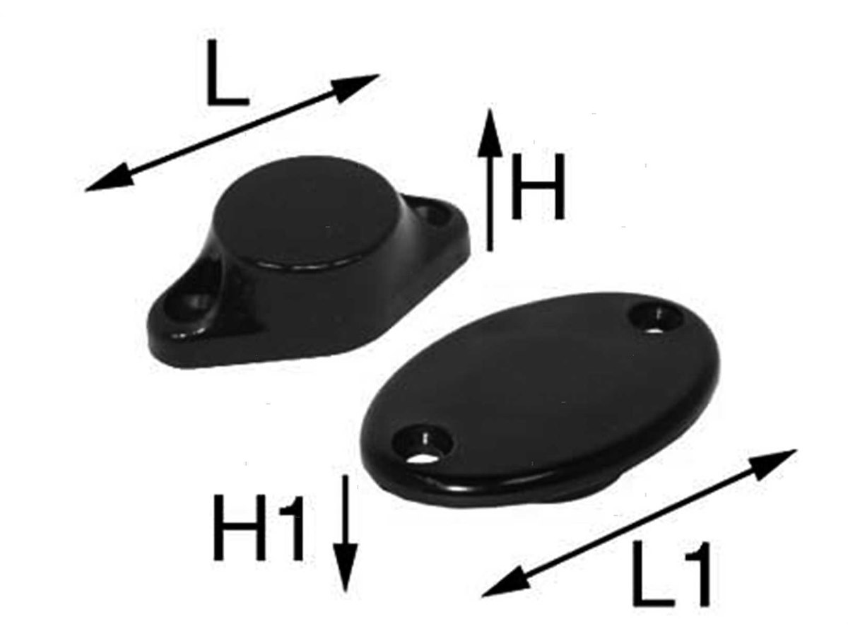 Ferma porte e portelli magnetico a calamita. Composto da due parti: una viene montata esternamente, la seconda va incassata. Guscio in Plastica rinforzata. Tenuta 2,5 Kg.