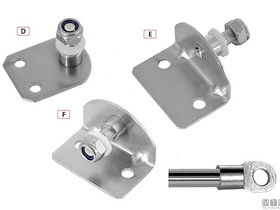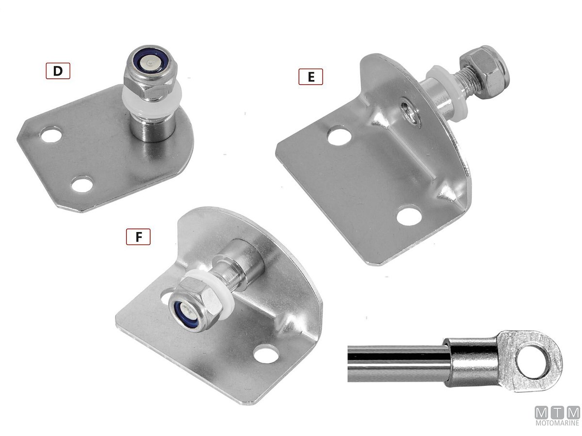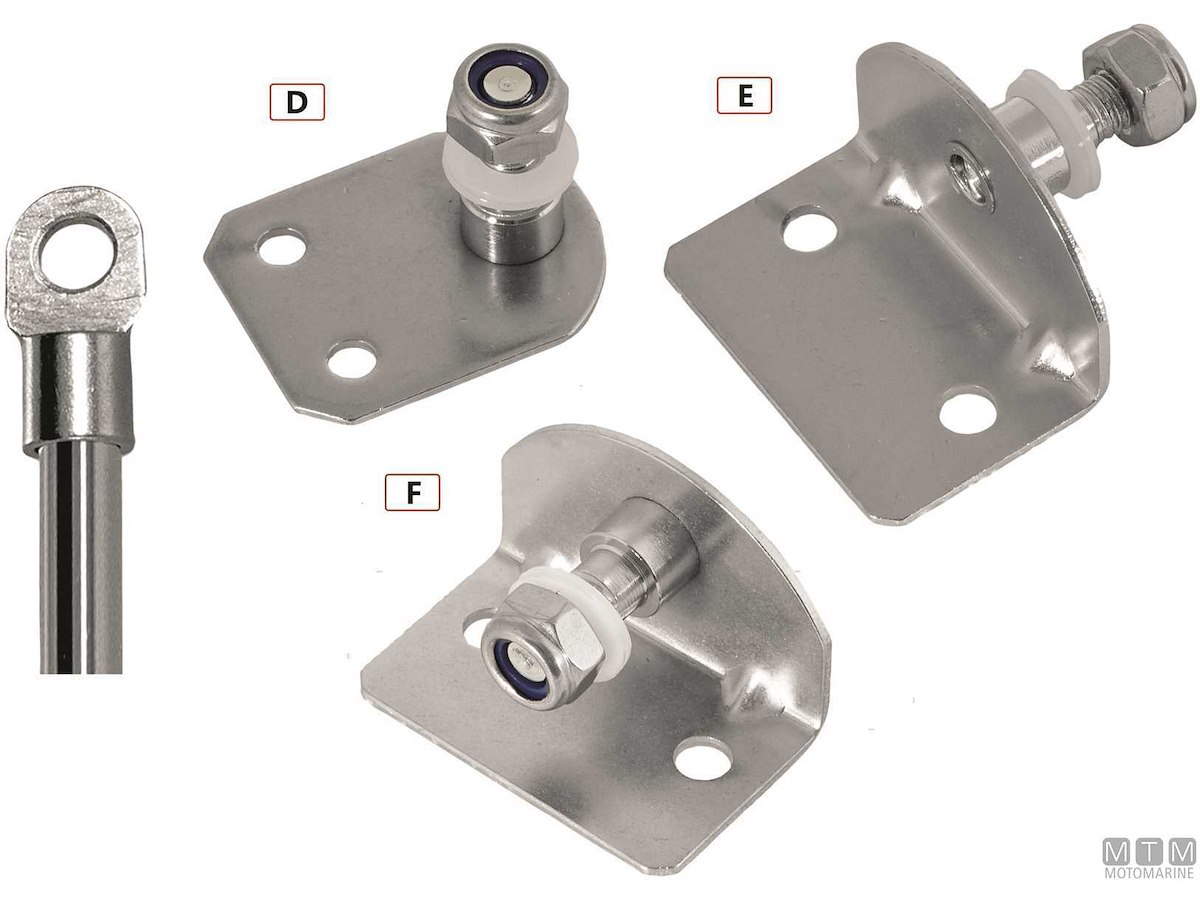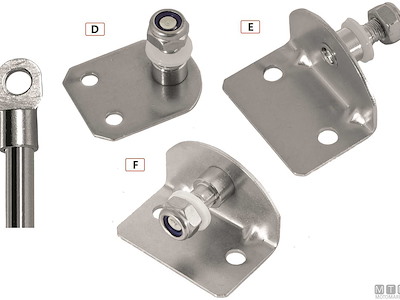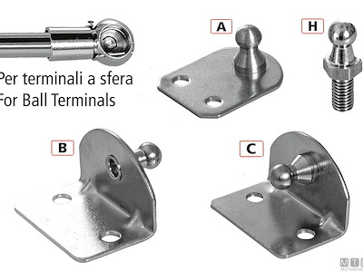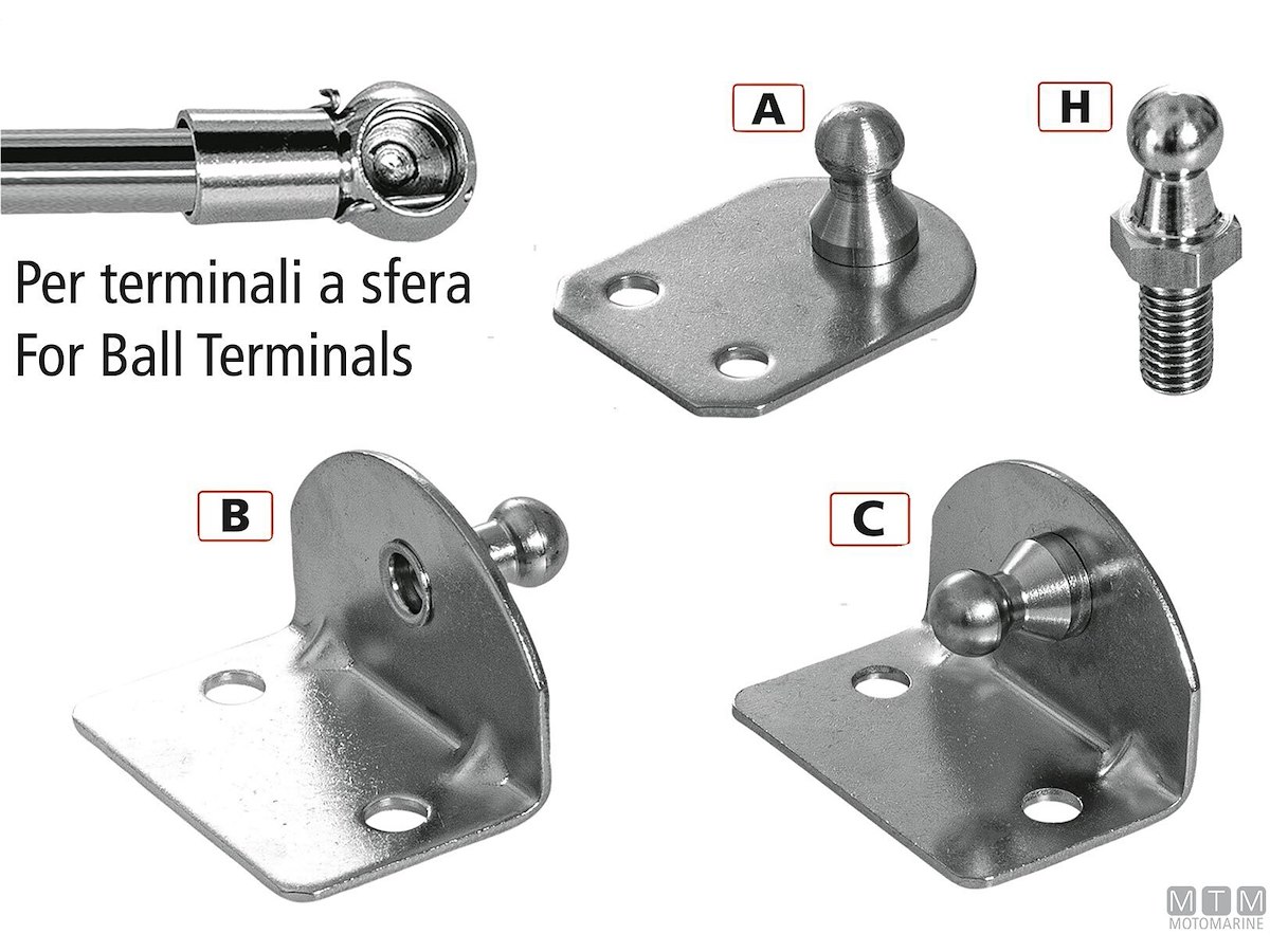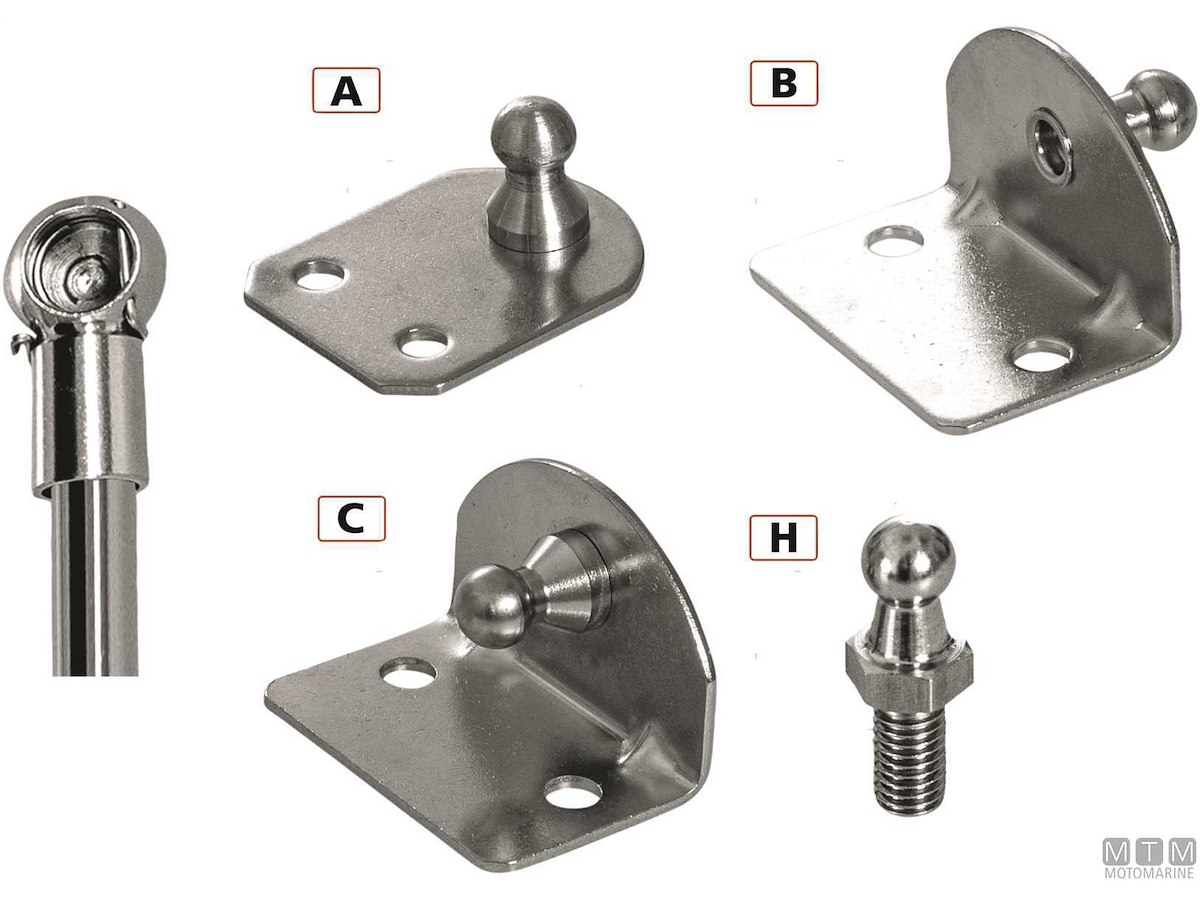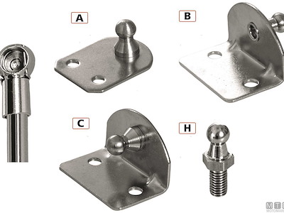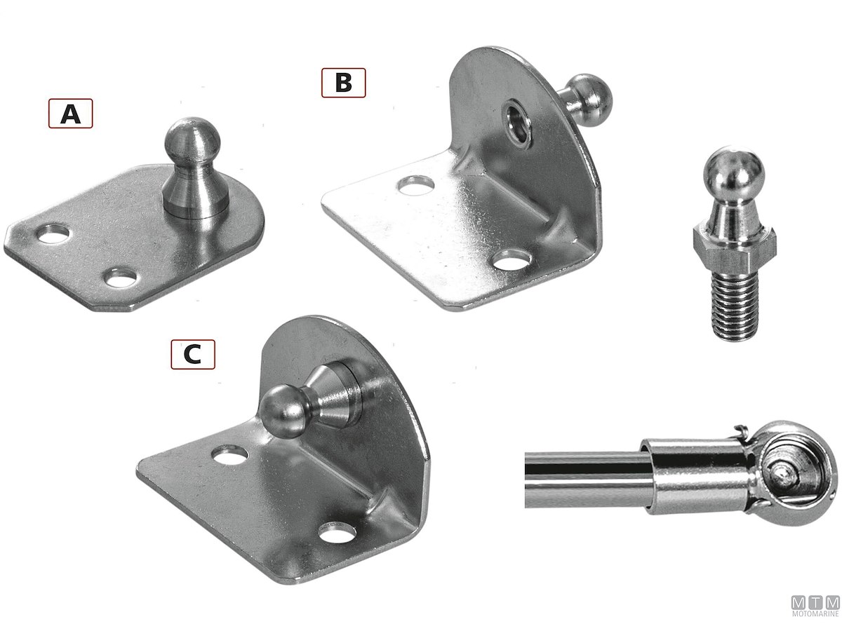 Attacchi a sfera da 10 mm e staffe per occhielli da 8 mm in Acciaio Inox 316 per molle a gas.
