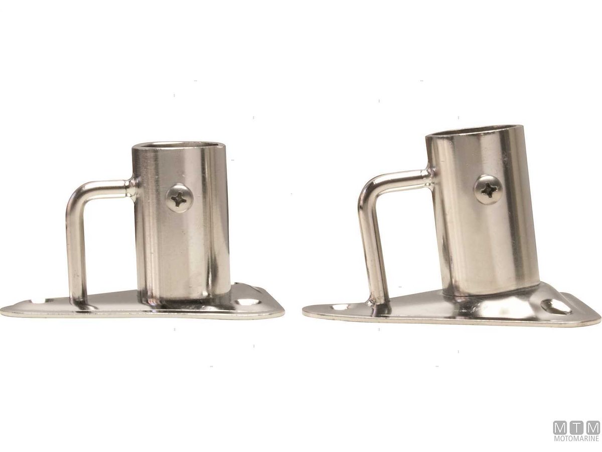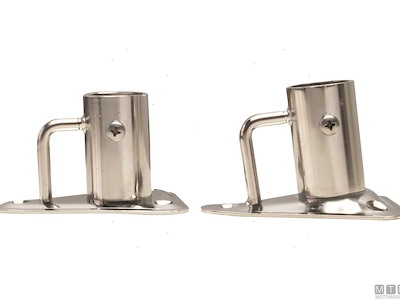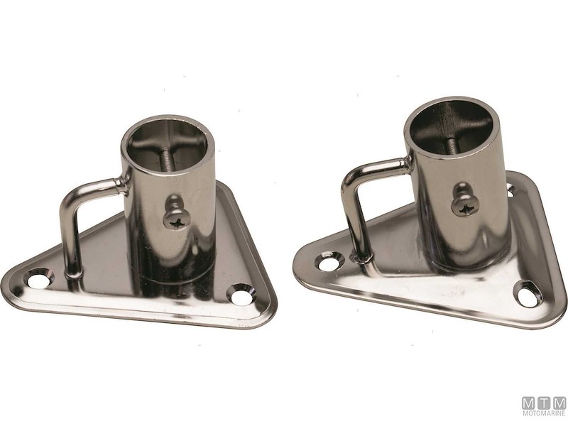 Basi triangolari in Acciaio Inox per candelieri. Dimensione base 95 x 95 x 77 mm.