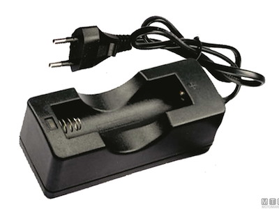 Batteria ricaricabile tipo 18650 e caricabatterie.
