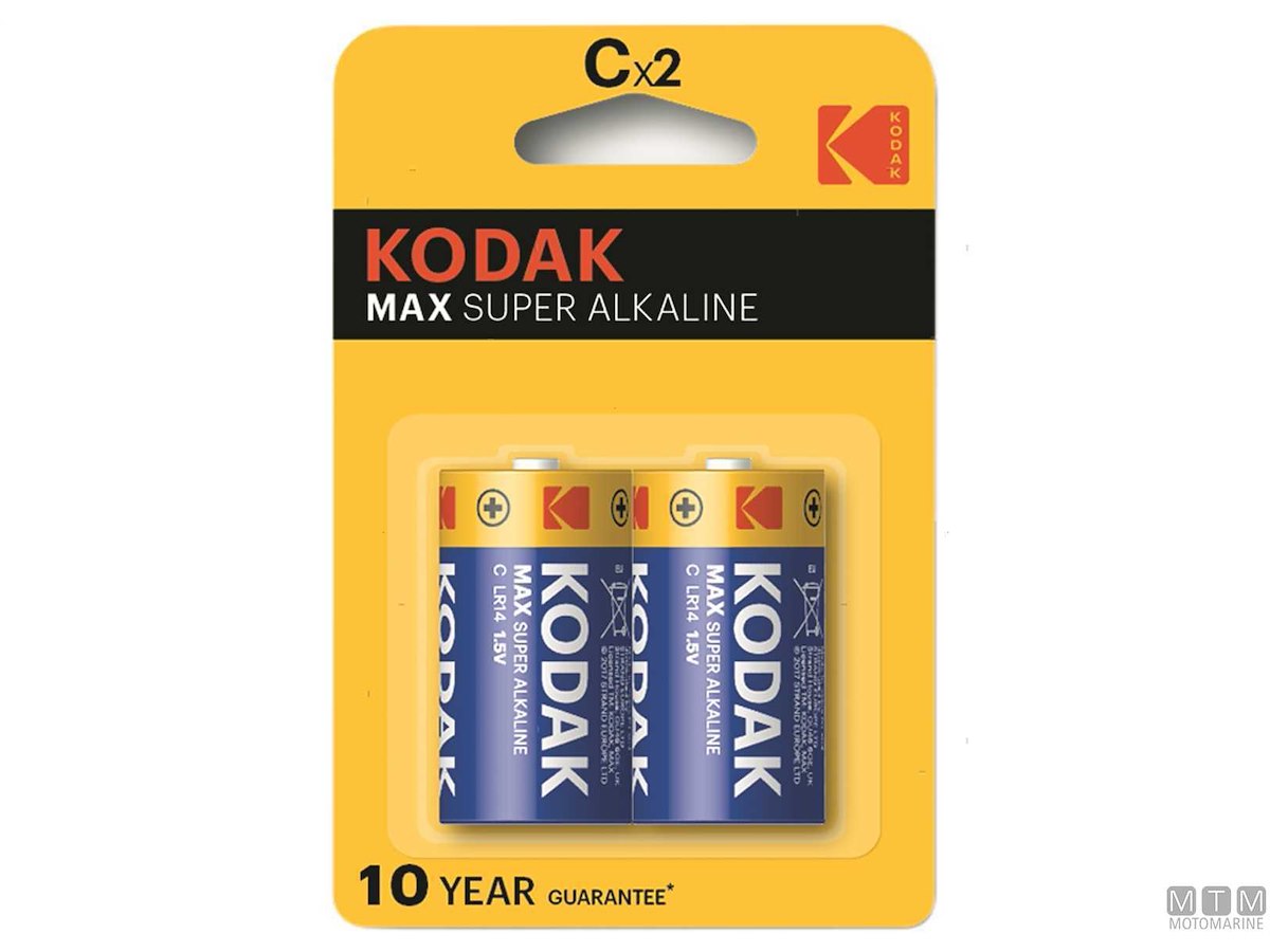 Batterie Kodak Max Super Alkaline C (1/2 Torcia) in confezione blister da 2 pezzi.