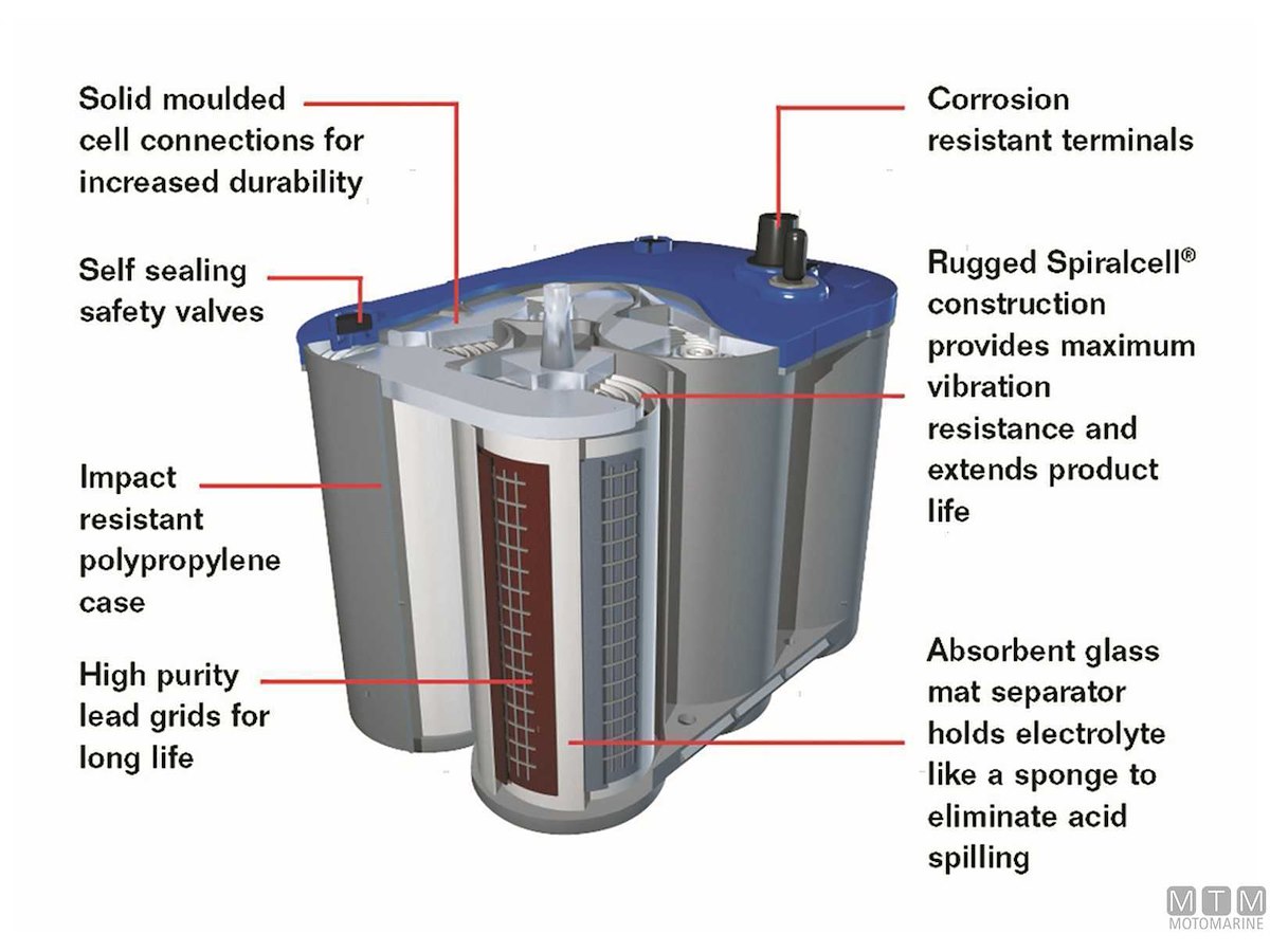 Le batterie OPTIMA® sono totalmente ermetiche ed esenti da manutenzione e possono essere montate in qualsiasi luogo e posizione. La struttura avvolgente minimizza i movimenti delle griglie e rende le batterie OPTIMA® molto resistenti alle vibrazioni. Queste batterie hanno una minima autoscarica, possono quindi rimanere inattive anche per un anno senza essere ricaricate.