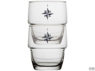 Bicchiere impilabile con decoro Northwind in confezione da 6 pezzi. In Ecozen, materiale innovativo infrangibile per uso alimentare. Lavabile in lavastoviglie, resistente alle bevande ad alto contenuto alcolico, adatto al microonde, riciclabile, resistente ai graffi e alle macchie di protezione solare.