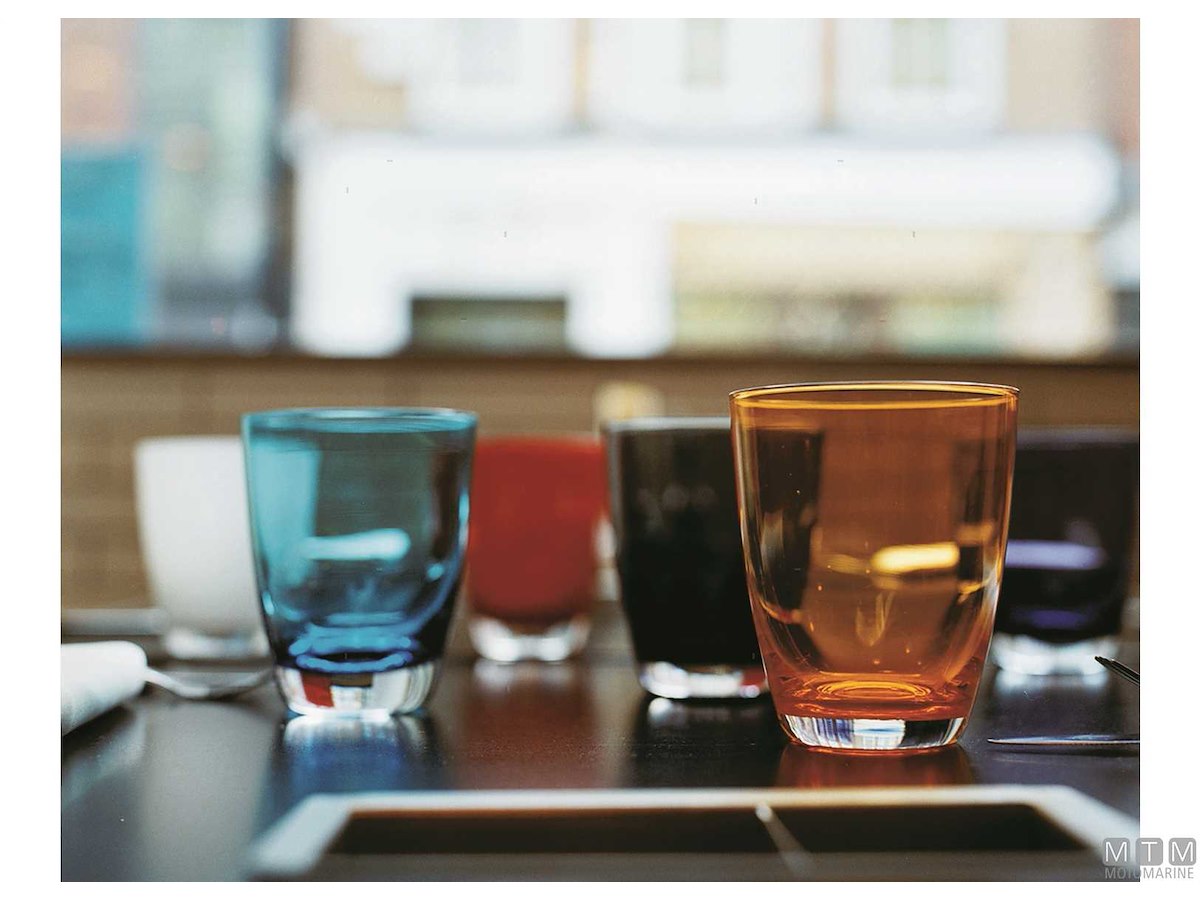Bicchieri eleganti Tiburón Tumbler con un tocco di raffinata aggressività, soffiati a bocca e lavorati a mano in pasta di vetro colorata in assenza di piombo. Ideali per servire ogni tipo di drink dall'acqua ai soft drink, dai long drink ai cocktail più creativi.
