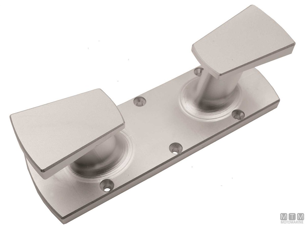 Bitta classica a due fusti in Alluminio Anodizzato. Base con 6 fori di fissaggio.
