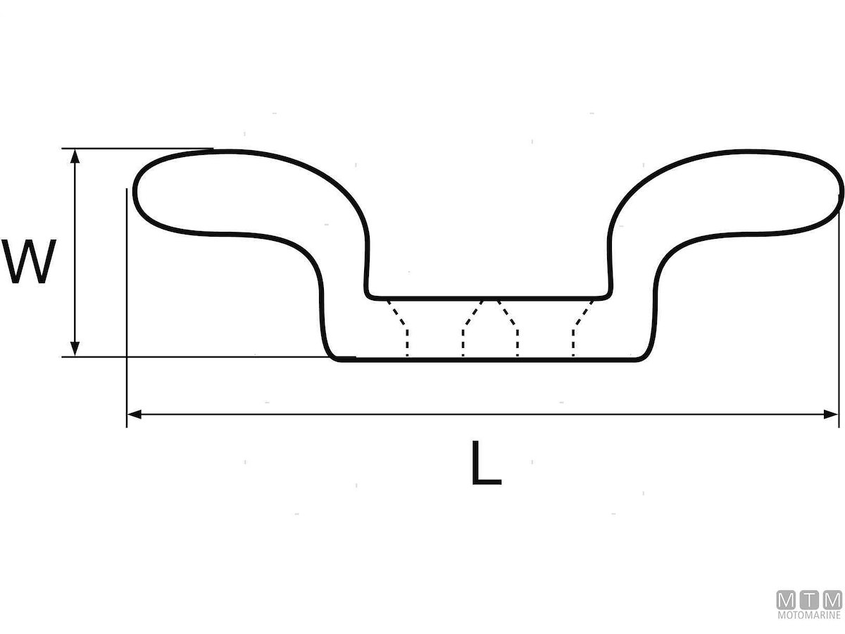 Bittina ferma-bandiera/ferma-teli in Acciaio Inox 316. Base con 2 fori di fissaggio.