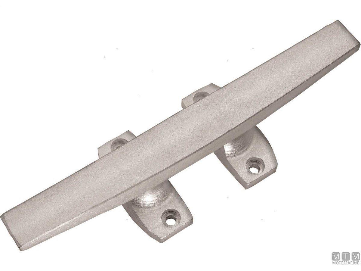 Bitta in Alluminio Anodizzato con asse sagomato piatto. Base con 4 fori di fissaggio.