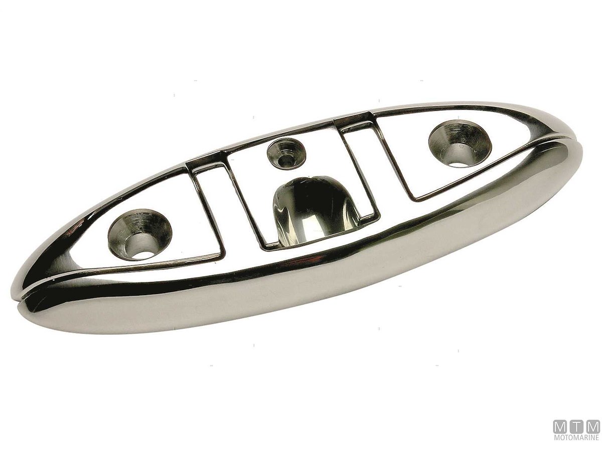 Bitta abbattibile in Acciaio Inox lucidato a specchio. Montaggio con viti passanti. Non richiede incasso, si abbatte ripiegandosi.