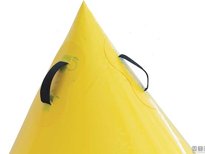 Boe da regata gonfiabili in Poliestere 1000D spalmato PVC molto resistente e robusto. Dotate di valvola di gonfiaggio e sgonfiaggio veloce e di 7 anelli in Acciaio Inox alla base che garantiscono un fissaggio al piombo sicuro e resistente a qualunque condizione meteo. Non necessitano di alcuna rete data la robustezza del materiale. Complete di maniglie per un facile trasporto e posizionamento e di 3 tasche in PVC per l'esposizione di eventuali messaggi pubblicitari.