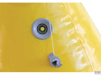 Boe da regata gonfiabili in Poliestere 1000D spalmato PVC molto resistente e robusto. Dotate di valvola di gonfiaggio e sgonfiaggio veloce e di 7 anelli in Acciaio Inox alla base che garantiscono un fissaggio al piombo sicuro e resistente a qualunque condizione meteo. Non necessitano di alcuna rete data la robustezza del materiale. Complete di maniglie per un facile trasporto e posizionamento e di 3 tasche in PVC per l'esposizione di eventuali messaggi pubblicitari. Gonfiatore compatto e veloce opzionale codice 2930080.