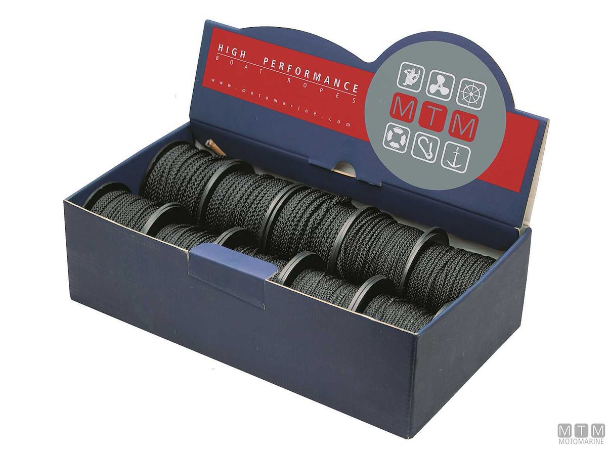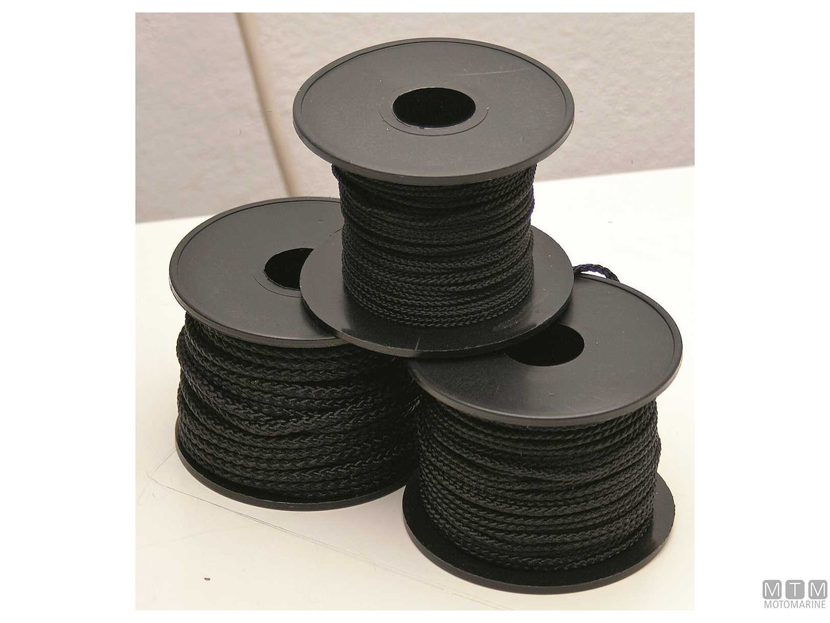 Bobinette di treccina in Poliestere Nero. Ideali per sagole, legature e mille altri usi a bordo.