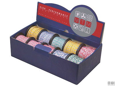 Bobinette di treccina in Poliestere multicolore. Ideali per scottine, sagole, legature e mille altri usi a bordo.