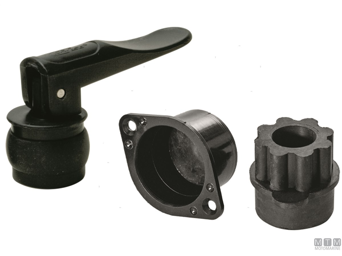 Boccola autovuotante con valvola e tappo.